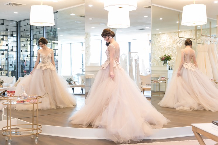 BM: “One of my favorite things about my job is putting a woman in a gown that lights up her face, and that she feels beautiful in. You know it the minute it happens, whether the first gown or the 10th they put on. When she feels like the loveliest version of herself and has a newfound confidence, my day is made.”