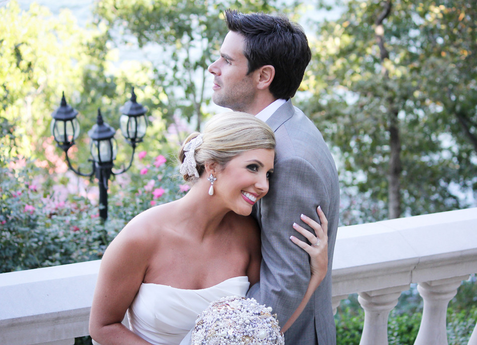 When the time came to talk marriage, it was decided the ceremony would take place at a family friend’s house overlooking Lake Hamilton in Hot Springs, and Amy and Kirk knew exactly what they wanted: natural elements with a touch of “Boardwalk Empire”/1920s. Big brooch bouquets, simple greenery and floating candles, deep shades of navy and bright silver helped pull everything together in on seamless evening. A few standout details of the day: the couple served a signature drink named after their English Bulldog Scarlett and instead of a getaway car, the wedding party set sail at sunset for a lap around Lake Hamilton.