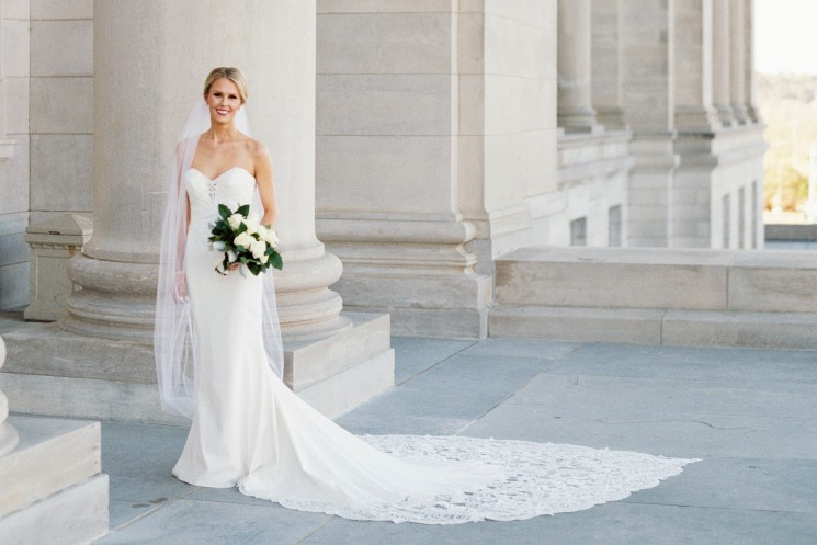 Samantha Spicer and Jeffrey Mansour made things official on Saturday, February 22, 2020 — which means we can finally share Samantha’s gorgeous bridal session. There’s just something about a wedding gown draping down the state capitol’s stairs that stops us in our tracks, and we can’t get enough of this session in particular.