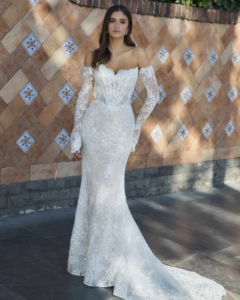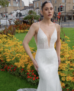 “Calla Blanche is a designer who specializes in unique styles. Creating luxury looks at a more affordable price. Hand-beaded gowns and detailing are their specialty. For the brides who want something unique and dramatic, we know how to pull a Calla Clanche gown.” Kaitlyn Dewberry, co-owner and operator