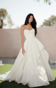 “Justin Alexander has some of the most beautiful classic designs you will see in our store. Every dress is designed using vintage inspiration with a modern twist, perfect for the bride wanting a sleek and classic bridal look. Their designs truly are timeless. Their customs team continues to go above and beyond to make all of our brides happy when creating their dream wedding dress.” – Kaitlyn Dewberry, co-owner and operator