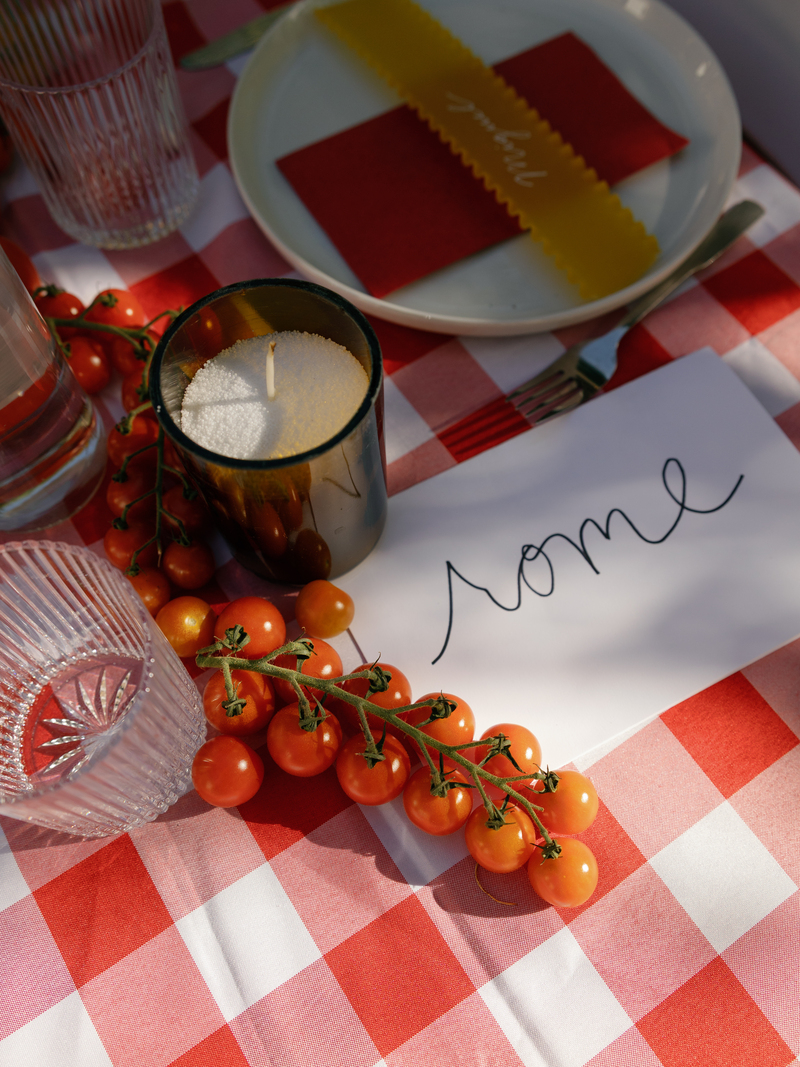 Violet and Joseph celebrated with their loved ones a day early with a Roma-inspired welcome party.